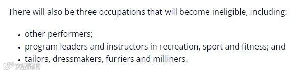 同时,还有三个职业将不再符合EE快速通道申请要求: