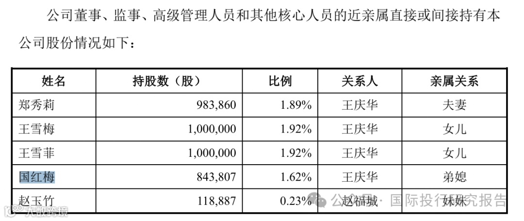 1、国红梅是控制人王庆华弟弟的前媳妇,2017年的IPO说明书就显示国红梅是"退休公司员工",一个7年前前就从公司退休的老妪在山东这个人文之地离婚,觉得有点蹊跷。