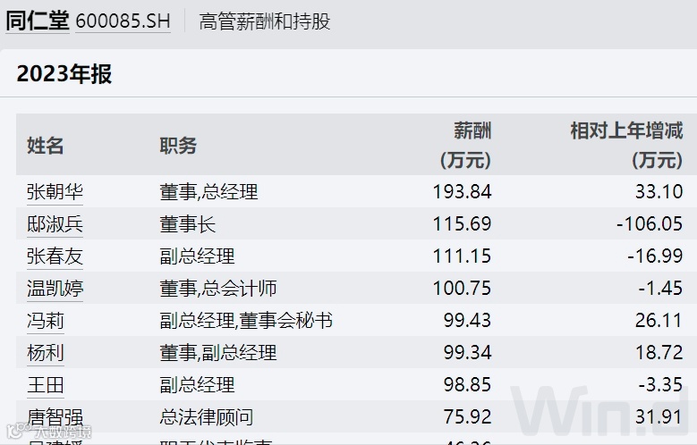 有意思的是,虽然同仁堂业绩稳步增长,但邸淑兵作为董事长,去年却降薪了。