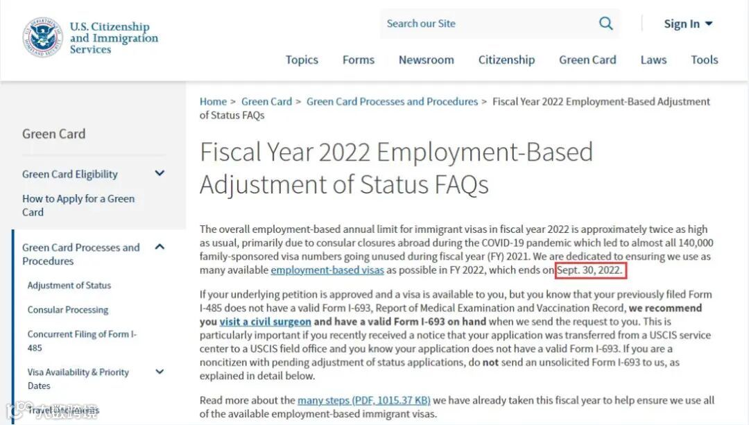 在本财年还剩不到3个月的时间里,移民局表示“在2022财年结束时,我们致力于确保使用尽可能多的基于就业的职业绿卡。”