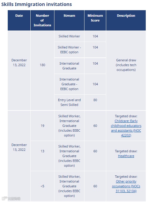 虽然EE没有最新的邀请,BCPNP在12月14日公布了最新一轮的常规类邀请:
