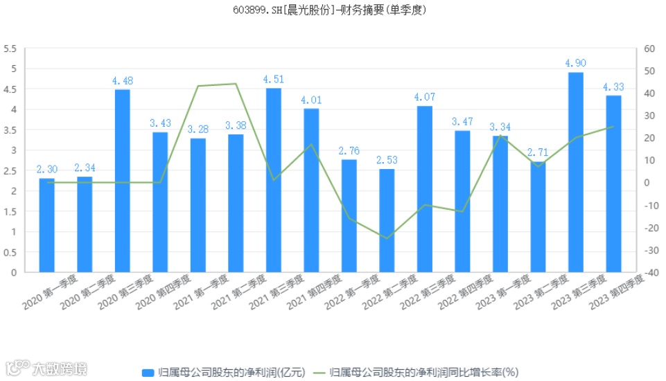 前段时间,晨光股份发布2023年年报。数据显示,2023年全年,公司实现营业收入233.51亿元,同比上涨16.78%;实现归母净利润15.27亿元,同比上涨19.05%。
