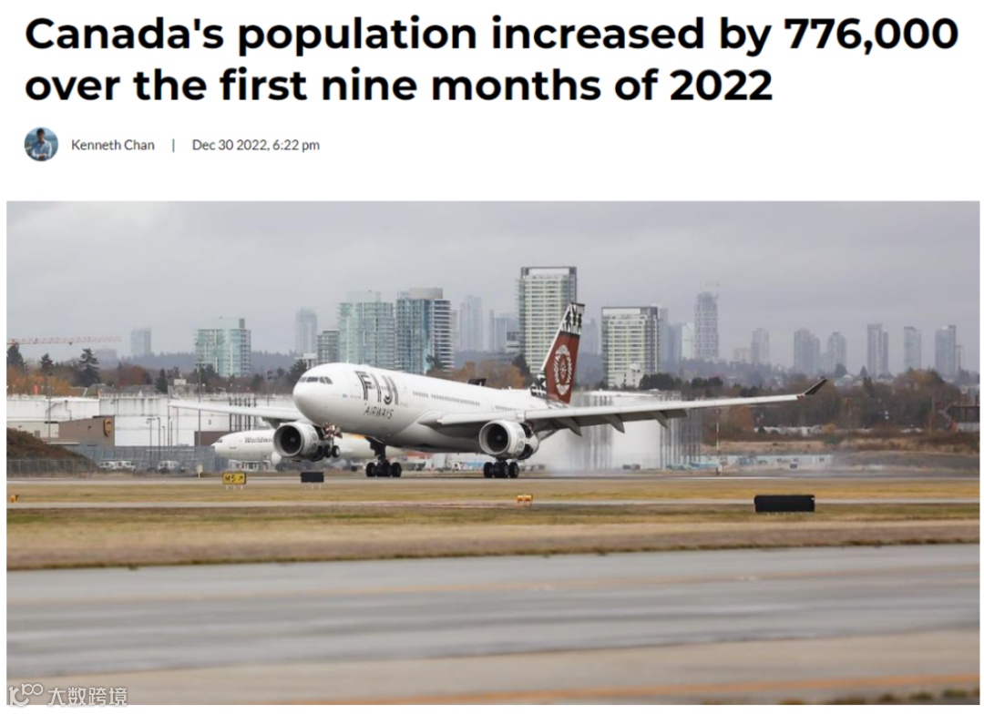 加拿大 2022 年前九个月的总人口增长(+776,217 人)已经超过自 1867 年联邦以来任何全年的总增长。