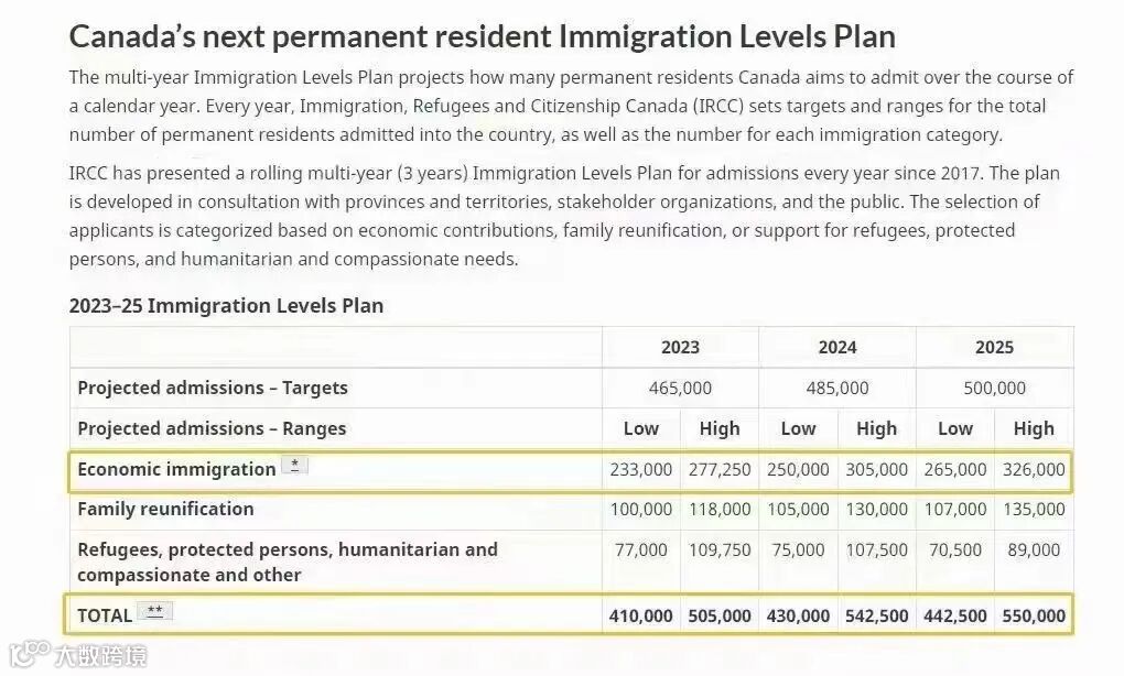 加拿大时间2022年11月1日,加拿大政府正式宣布了2023-2025年移民水平计划。从2023年至2025年期间将狂吸共145万移民,其中经济类移民将占主力军。