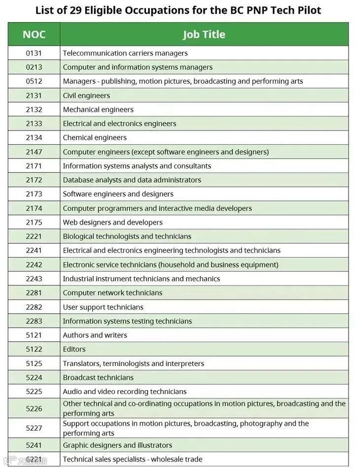 BC PNP科技人才移民并不单单只包含IT/互联网行业的职业,不少其他行业的科技类职业,以及一些看起来和科技关联不大的职业也算在其中:
