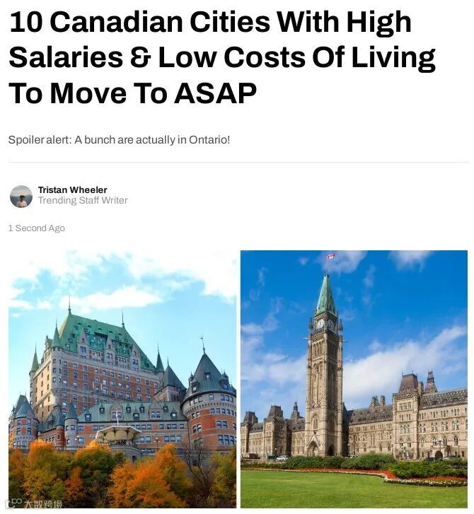 目前,加拿大有10个收入中位数高且生活成本低的城市,其中有些就在安省,大家可以考虑尽快搬过去住了~