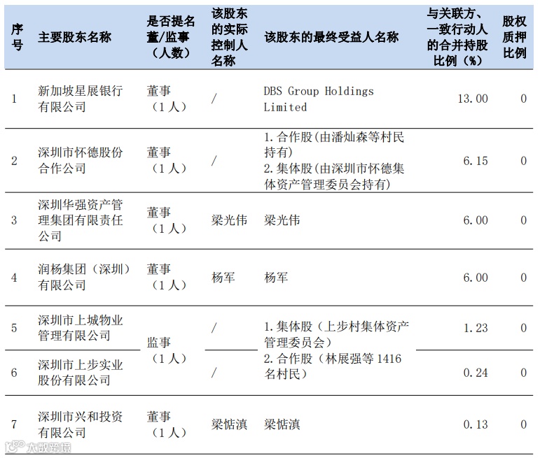 早在2018年,持有深圳农村商业银行总股份5.15%的怀德股份还曾是该行第一大股东,只是经过2021年的定增之后才让位于星展银行,但迄今仍保持着第二大股东的地位。而在星展入股深圳农商行之前,其第二大持股股东的位置一直为华强资产所有。