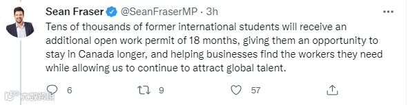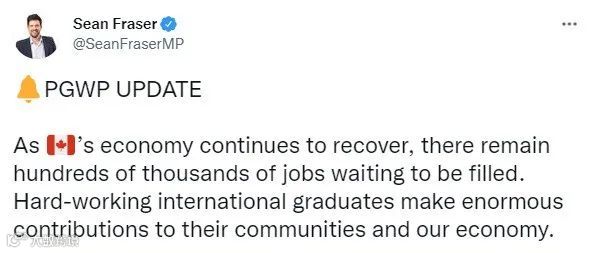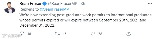 “我们现在正在为工签即将过期,或者在2021年9月20日-2022年12月31日之间过期的国际毕业生,延长工作许可证。”
