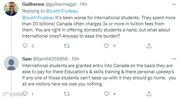 还有网友指出,现在加拿大留学生的经济压力才是最大的,政府在给本地学生提供补助的同时,是不是也应该考虑一下减轻国际留学生的负担?
