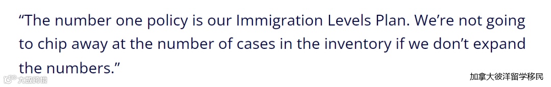 “第一大政策是我们的移民水平计划。如果我们不扩大数量,我们就不会减少库存中的案件数量。”