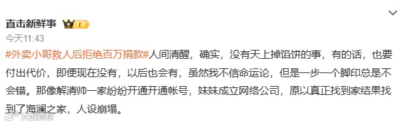 这时网友们才意识到原来解清帅所说的“靠自己的努力”就是“直播带货”。毕竟大众想象中的“努力”“奋斗”,是解清帅通过学习或工作证明自己,而不是直接把基于同情和敬佩的流量转化成“销量”。