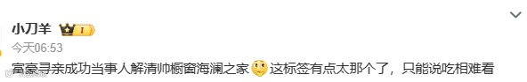 很大一部分原因在于,“亿万富翁之子”回归家庭的过程中并没有如郁豹豹那般需要企业献爱心的地步,也没有像孙海洋那样用直播带货助力“万千萤火”的公益成分,有的只是大众对“亿万富翁之子”的戏谑与调侃。