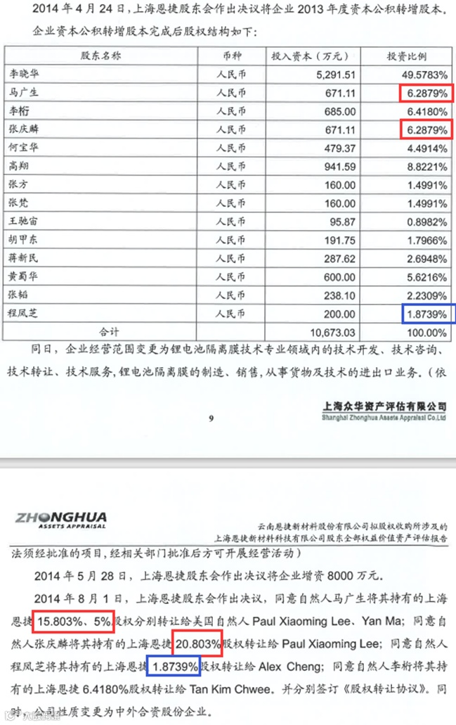 2014年8月1日,自然人马广生将其持有的25.803%、5%上海恩捷股权分别转让给李晓明和马燕。但是当时,马广生总共才拥有上海恩哲秀与英捷6.2879%的股权,这是怎样做到的呢?同样的情况也发生在自然人张庆麟的身上。而同一次股权转让,程凤芝拥有与转让的股权,却完全能对得上。