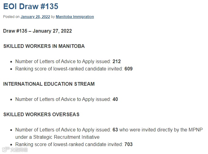 当地时间2022年1月27日,曼省移民局第135轮EOI抽选结果: