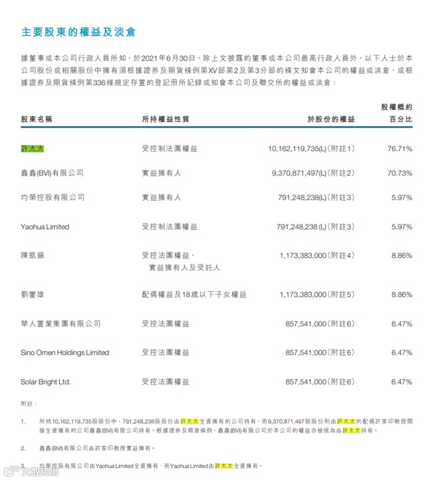 2021年底,许家印及其妻子丁玉梅共同出售中国恒大12亿股股票,作为一致行动人,许家印及丁玉梅持有中国恒大股份比例从76.69%下降至67.87%。