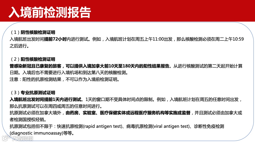 3. 核酸检测报告结果需要留存到自入境加拿大开始后的第14天。
