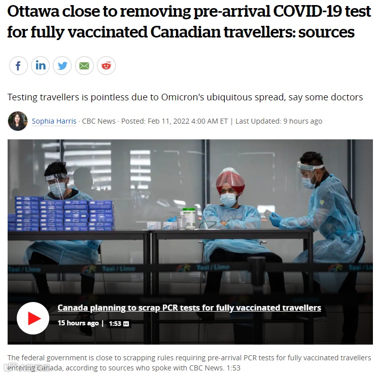 加拿大政府一位高级别官员告诉CBC,联邦政府即将取消对在加拿大境外旅行的已完全接种疫苗的旅行者入境时的强制性新冠检测。预计本月底前执行入境新政策。