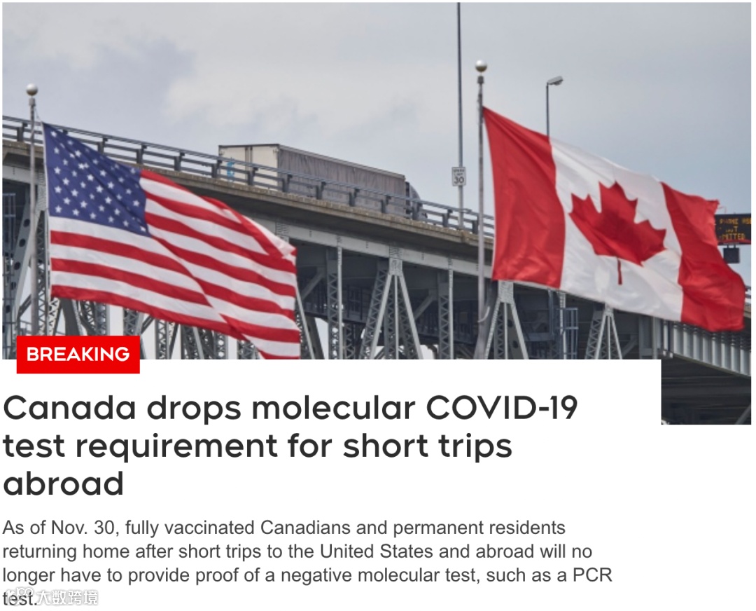 从本月30日起,针对所有完全接种过疫苗的加拿大人,如果你出境的时间少于72小时,那么您在回加拿大的时候不需要提供阴性检测证明。
