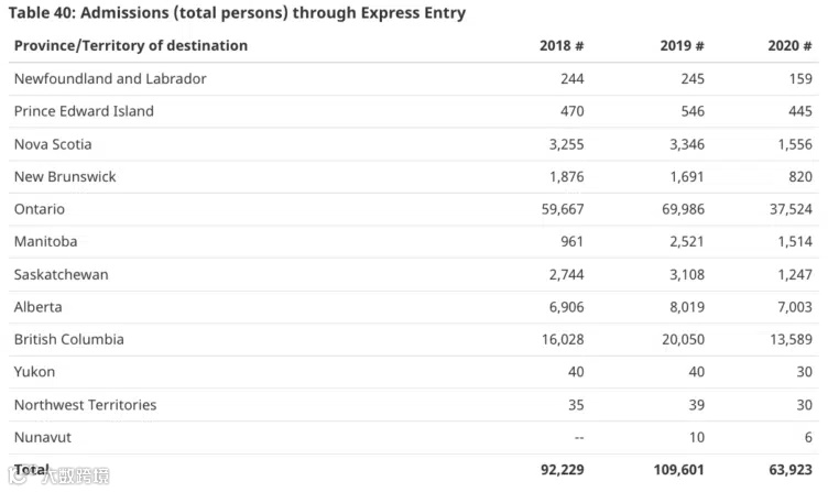 2020年全年,有总计107,000名快速通道候选人获得邀请函(ITAs)。