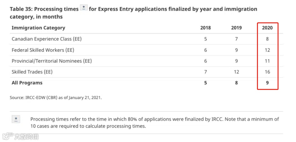 加拿大经验类别(CEC)是2020年所有项目中审批速度最快的,平均审理速度为8个月。