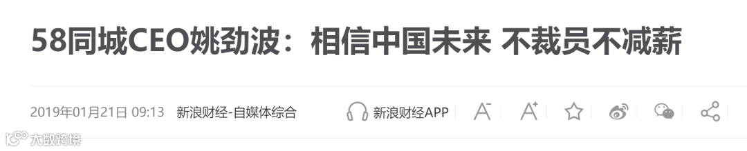 2019年时姚劲波还对58同城未来的发展十分看好,并承诺,不裁员不减薪不减少或延发年终奖。