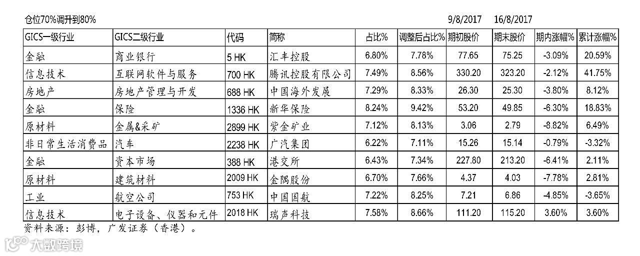 本期组合个股无变化,组合仓位由70%上调至80%。现金部分建议继续买入ibond (4231 HK)。