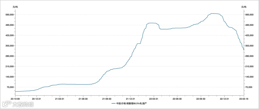 2018年,国内新能源汽车补贴退坡,碳酸锂价格一路阴跌,从最初的18万元/吨降至2020年的4万元/吨。2021年开始,碳酸锂突然直线拉升,价格最高时超56万元/吨。