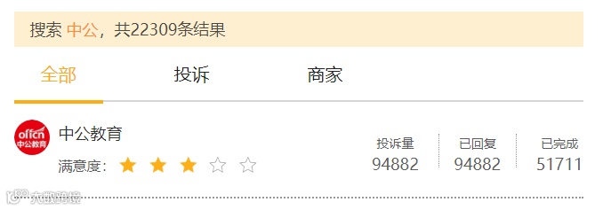 但直到现在,网络上相关投诉依旧铺天盖地,在黑猫平台上,中公已收获投诉超90000条,其中九成以上都与退费问题有关。