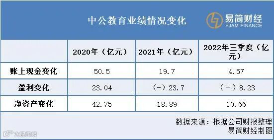 2021年末,中公的账上还有19.7亿元,而到了2022年三季度末,却仅剩下4.57亿元,这点钱还够不上负债金额的零头。