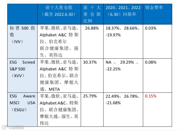 标普500、标普500 ESG指数及ESGU各项指标对比