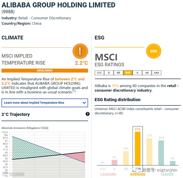 同时要注意的是,MSCI ESG评级标准虽然在国际上颇具影响力,但本身并不能完全贴合中国市场的具体情况,本土ESG评级机构商道融绿给到阿里集团的评级则是“B-”,另一家本土评级机构妙盈则给到了更低的“CC”。