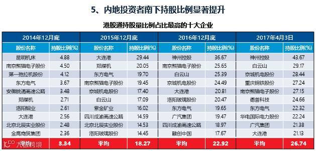 南向交易占比自2016年二季度开始出现强劲上升趋势;整体南下交易呈显著的净买入状态;深市南下交易量逐步提升;内地投资者南下持股比例显著提升。