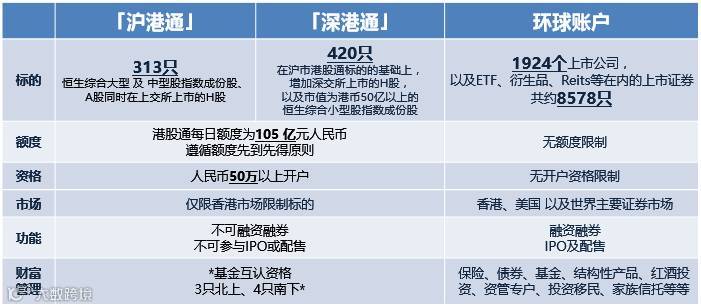 最后介绍广发证券(香港)—— 一站式国际财富管理平台。 广发香港环球账户与港股通账户对比: