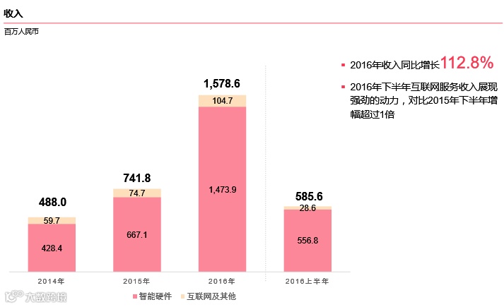 2016 年收入同比增长112.8%;2016 年下半年互联网服务收入展现强劲的动力,对比 2015 年下半年增幅超过1倍。