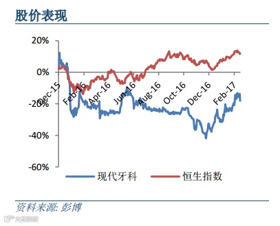 公司目前股价对应11.4倍2017年预测市盈率,而全球牙科器材股票估值为22.5倍。我们认为该股价折让之所以存在,是由于市场较为分散,现阶段没有单一公司占有显著较大的市场份额。作为港股和A股市场上唯一的大型牙科器材个股,我们认为公司为投资者提供了切入全球牙科器材市场的难得机会。