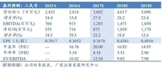 我们调整17、18和19年EPS为人民币0.37元,、0.44元和0.49元。当前价格对应2017、2018和2019年调整EPS约为20.0、16.8和15.0倍,维持买入评级。