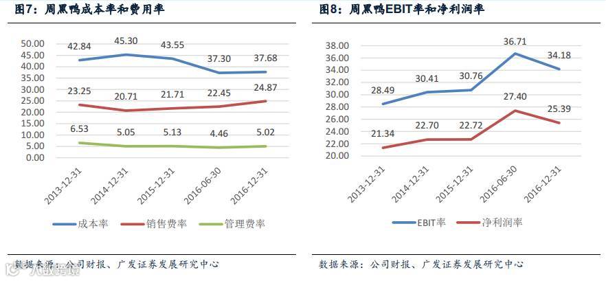 公司于2016年于原材料价格相对低点增加采购,导致毛利率由2015年的56.4%提升至2016年的62.3%。2016年公司增加了促销活动投入,销售费率同比上升32.8%,增幅超过收入及毛利增幅。销售费率由2015年的21.71%提升至2016年的24.87%。管理费率5.02%,与去年同期的5.13%比相对稳定。