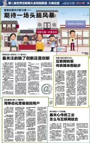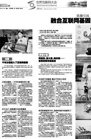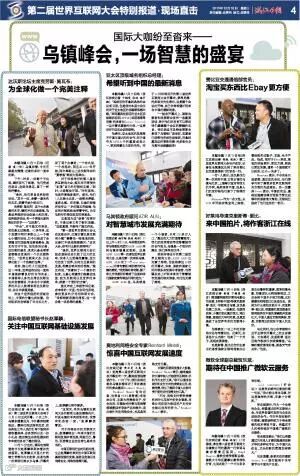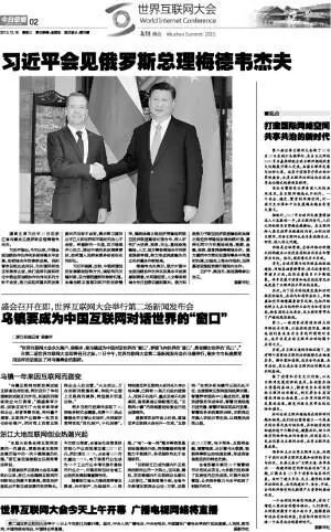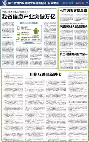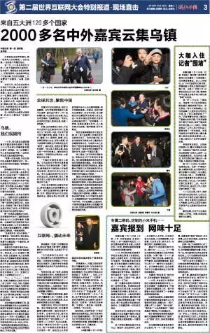 今天开幕的第二届世界互联网大会吸引全球媒体,浙报集团所属纸媒(包括浙江日报、钱江晚报、今日早报等在内)前几天就推出精心制作的第二届世界互联网大会特刊,容量超大,力度空前。