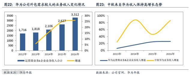 华为业务收入占比的持续攀升,截至2016年,华为业务收入占比已达54%。