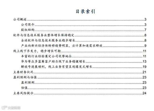 公司成立于2000年,是中国领先的大型综合性软件与信息技术服务企业。公司提供从咨询服务、技术服务(主要涉及解决方案服务)、外包服务(包括ITO、BPO、EPO等服务)到人才培训服务的“端到端”IT服务。截至2016年底,公司员工人数达到47,188人,在其覆盖的政府与大型企业、制造与流通、金融与银行、保险证券、电信、高科技、公共服务、能源等多个行业中占据领先位势。