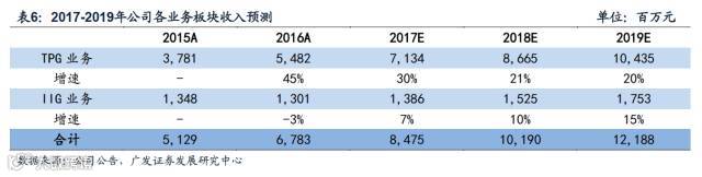 2016年公司实现了营业收入上市以来连续第13年的增长,达到67.8亿元,同比增长32.3%,归母净利润达到4.42亿元,同比增长57.9%。分业务来看,2016年公司TPG业务收入为54.82亿元,占比为80.8%;IIG业务收入为13.01亿元,占比为19.2%。