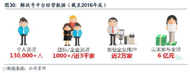 公司“解放号”业务发展迅猛,截至2016年底,“解放号”接包团队已达到1,000多个,接包企业近3,000家,接包工程师有13万之多,发包企业也接近2万家,发包额已超过了6亿元。快速增长的用户资源为“解放号”后续的发展注入了强劲的动力,我们认为随着公司升级盈利模式、拓展服务目录、与华为云展开使命级战略合作、加大宣传力度等措施的逐步实施,“解放号”平台后续的发展十分值得期待。