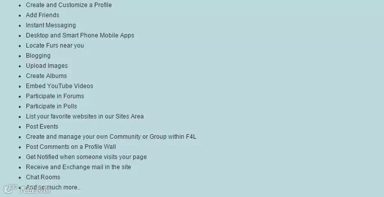 这家网站提供兽迷粉丝各种形式的社交体验。如建立个人档案、与其他兽迷的互动、上传照片、编写博客、发布活动、聊天室等。