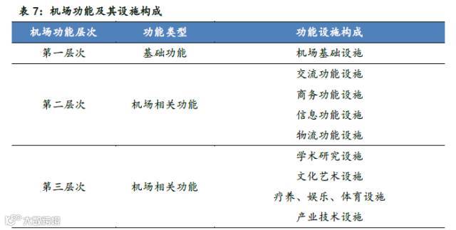 机场的功能和相应的设施可以分为三个层次,其中机场基础功能是保障机场正常运行所必需的和最低限度的功能,这些功能的相应的设施不仅为旅客和航空公司提供服务,也为机场带来直接经济利益。除此第二层和第三层将为机场带来间接受益。