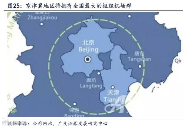 2014年底,国家发改委批复同意建设北京新机场,给予了新机场国际航空枢纽的定位,并提出天津滨海机场为航空物流和石家庄机场为航空快件集散及低沉本航空的定位,加上现有的首都机场,使京津冀地区拥有全国最大的枢纽机场群。