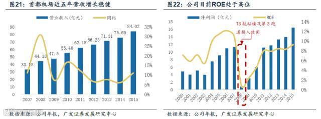 1999年首都2号航站楼投入使用,早期国内机场的竞争压力较小(浦东机场1999年兴建),投产后ROE依然较高,2004年机场进入高盈利周期,高盈利保持了4年。2008年,首都机场以269亿对价收购母公司建造的三期项目(90.2万方T3航站楼及3800米的第三跑道)。由于2008年向母公司支付试用期期间三期项目租金开支及年中(10月)收购相应资产的资本支出,公司净利润降至谷底。
