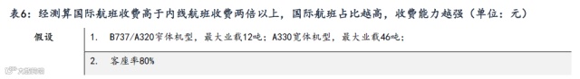 (2) 同飞国内的飞机,宽体机的收费16682元也远远高于窄体机的6551元。往往内线主要是窄体机为主(70-80%),外线以宽体机为主(60-70%)。