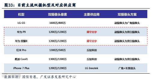 目前苹果、华为等主流机型均搭载双摄,未来双摄渗透率会不断上升,摄像头模组的的单机价值从几十元增至接近200元。倍增的需求有望大幅提振手机摄像头产业链厂商业绩,摄像头供应商的业绩增长模式从手机增量时代进入摄像头价值倍增时代。