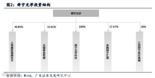 公司前身为成立于1984年的余姚市第二光学仪器厂,1995年更名为浙江舜宇,2004年开始生产手机摄像模组,进入手机业务领域, 2007年舜宇光学科技(集团)有限公司在香港联交所主板上市。目前公司控股股东为舜旭有限公司,持股比例为38.42%,王文鉴先生为舜宇光学实际控制人。