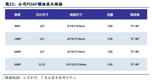 智能手机进入存量时代,品牌厂商积极建立差异化优势以应对日趋激烈的竞争,摄像头领域微创新不断。像素不断提高,尺寸不断缩小,相位检测自动对焦技术和光学防抖技术也不断取得突破,镜片数量从5P向6P演进。舜宇光学1300万像素广角、1600万像素大光圈及千万像素以上6P镜头均已开始量产。其在相位检测自动对焦技术、虹膜识别等领域也有深厚的技术储备。